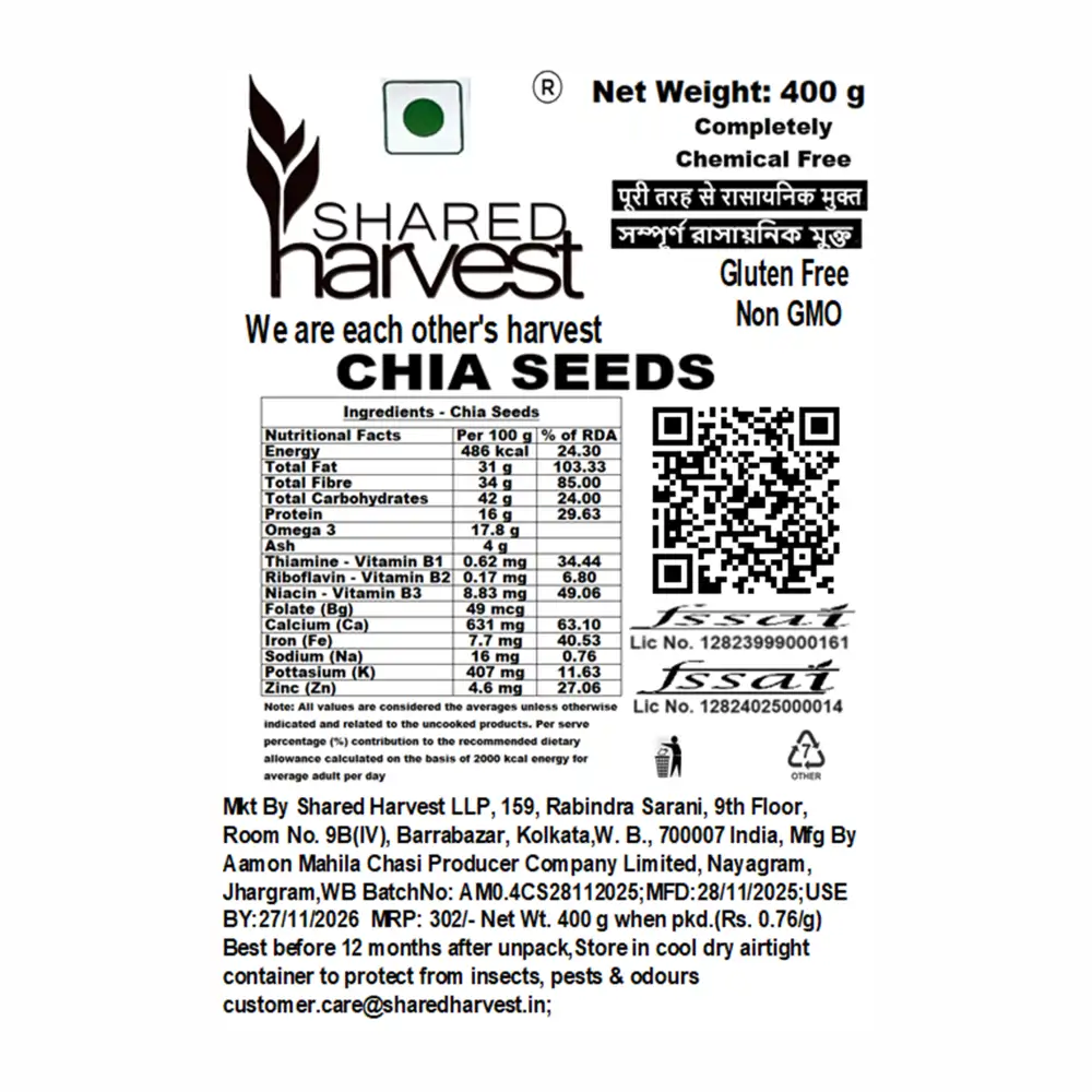 Shared Harvest Chia seeds are highly nutritious and offer several benefits, including improved digestion, better heart health, and support for weight management due to their high fibre and omega-3 fatty acid content. They are also a good source of protein, vitamins, and minerals like calcium, which supports strong bones and teeth.
