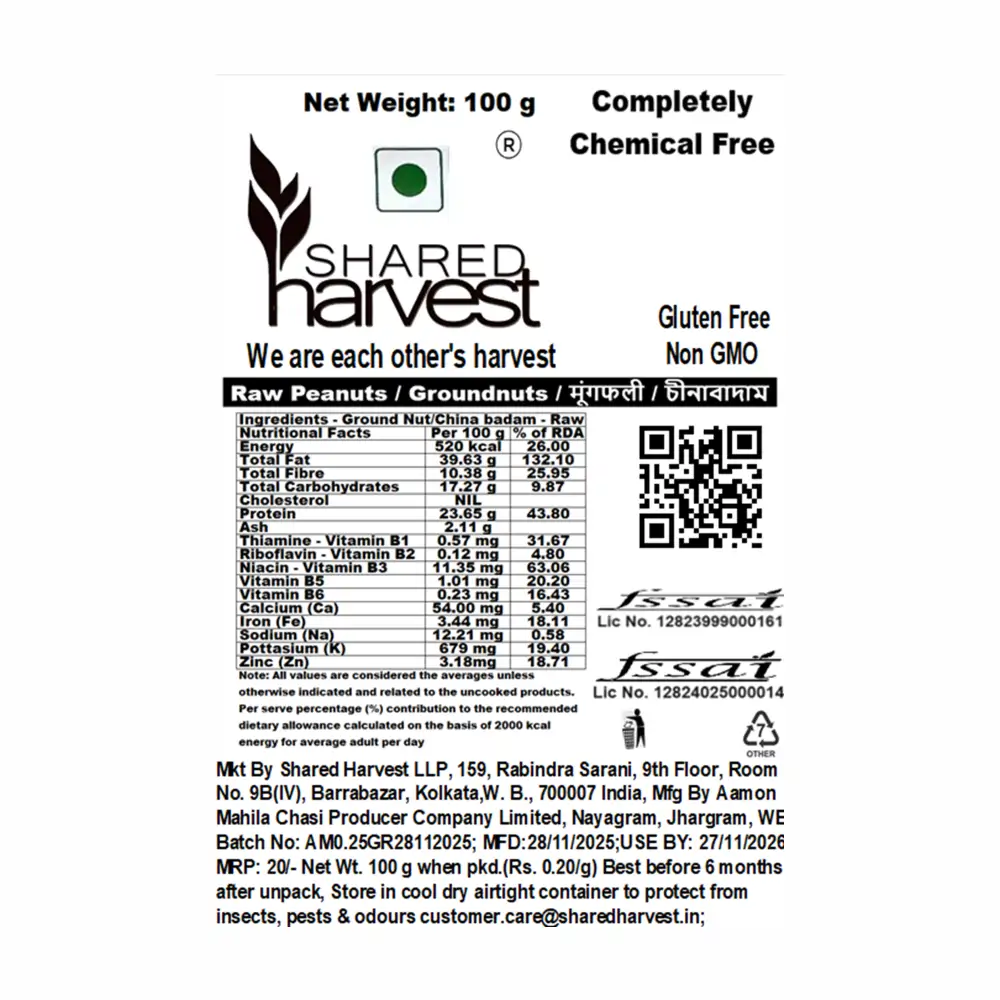 Shared Harvest Raw Peanuts, also known as Groundnuts or China Badam, are a versatile and nutrient-rich legume enjoyed as a snack, in cooking, or as an ingredient in healthy recipes. Sourced from premium quality peanuts, they are unroasted, unblanched, and retain all their natural nutrients.