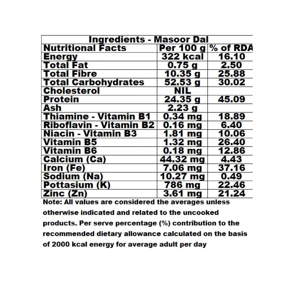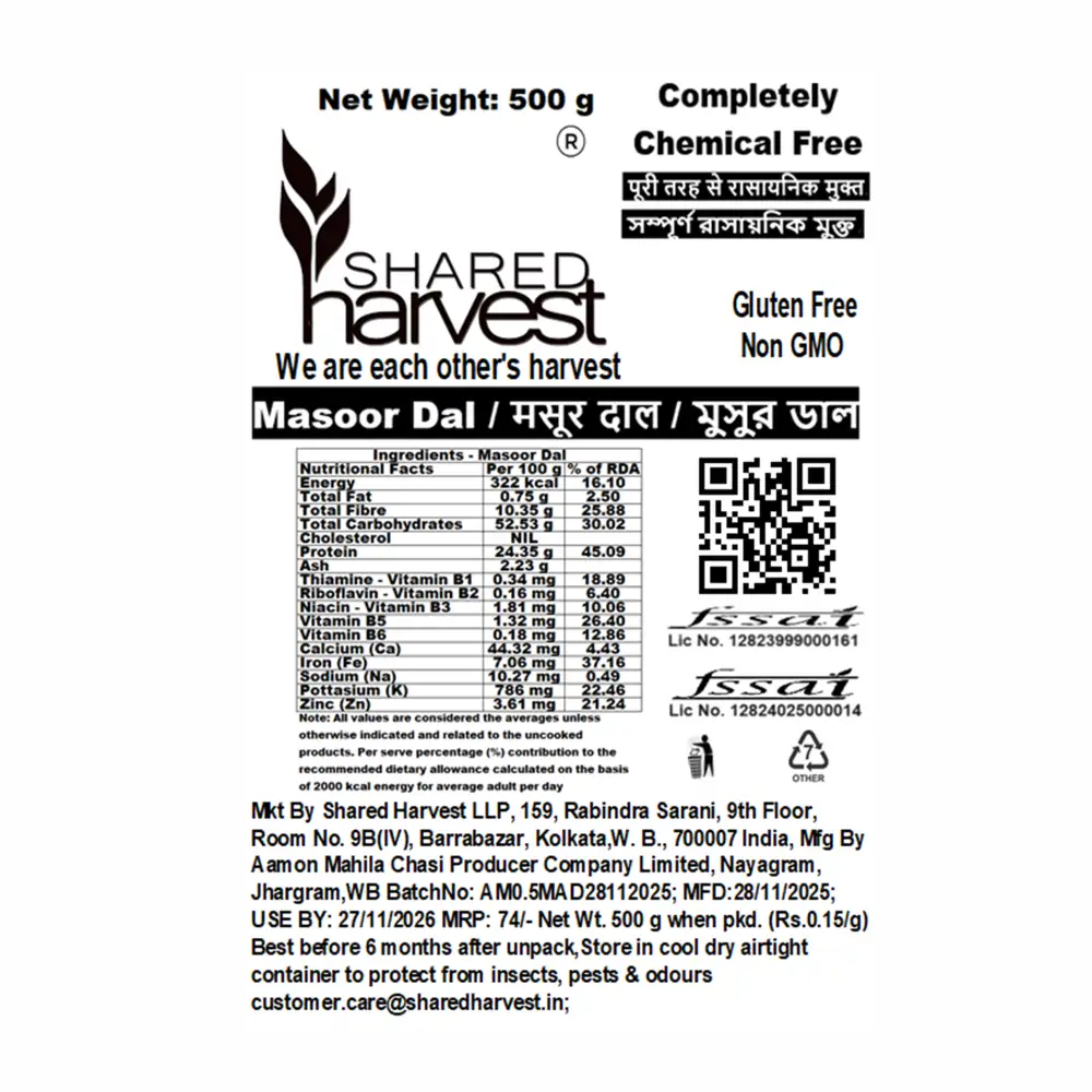 Benefits: Shared Harvest Premium Roasted Masoor Dal (Deshi) offers numerous health benefits, including support for heart health due to its high fibre, potassium, and magnesium content, which helps lower cholesterol and regulate blood pressure. It is also great for weight management as it is high in protein and fibre. Furthermore, it aids digestion, boosts skin and eye health, provides essential vitamins and minerals like iron, calcium, and folate, and is excellent for pregnancy nutrition. It is a good choice for vegetarians and vegans.