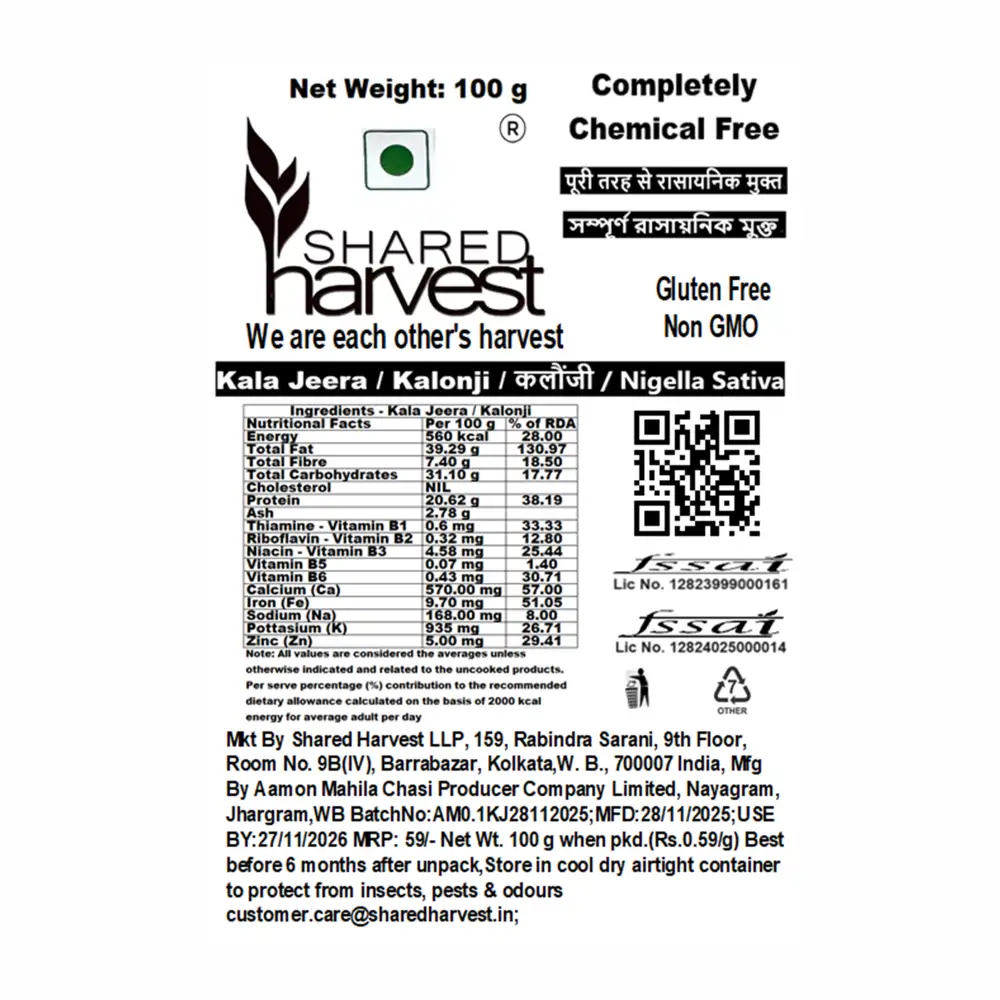 Shared Harvest Kala Jeera / Kalonji / Black Cumin / Nigella Sativa / Black Caraway